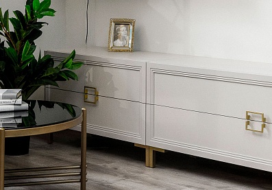 Тумба Дольче под телевизор с выдвижными ящиками Кашемир серый