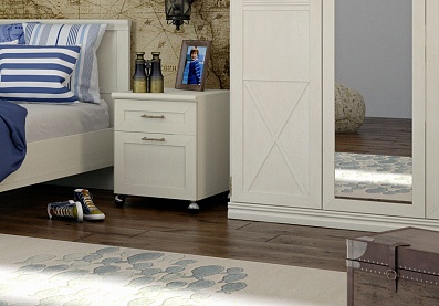 К этой мебели подойдут аксессуары в стиле неоклассика, ковры с винтажным потертым рисунком, плетеные пуфы и вязанные пледы. Если вы хотите добавить акцентов в интерьер — используйте стулья и кресла ярких оттенков, для более «спокойного» интерьера — выбирайте приглушенные тона. Не забудьте про туалетный столик, который сделает утренние и вечерние ритуалы еще приятнее.