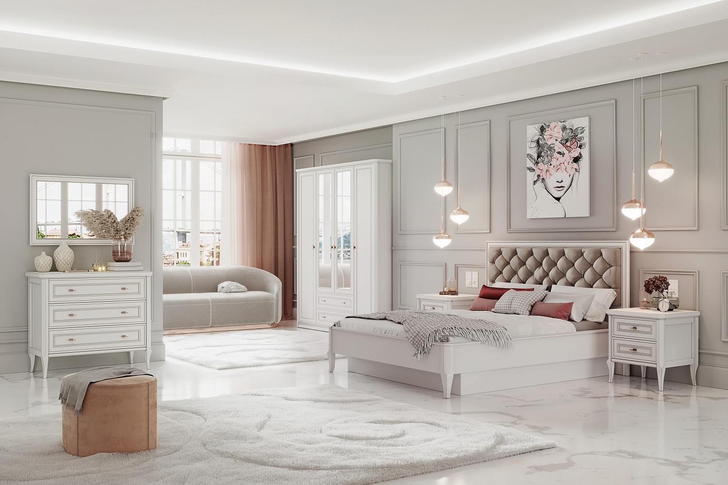 • Спальня в классическом стиле. Такая мебель подойдет к интерьерам в стиле неоклассика, контемпорари, эклектика. При создании этой коллекции наши дизайнеры вдохновлялись романтичной атмосферой и элегантностью Санкт-Петербурга;