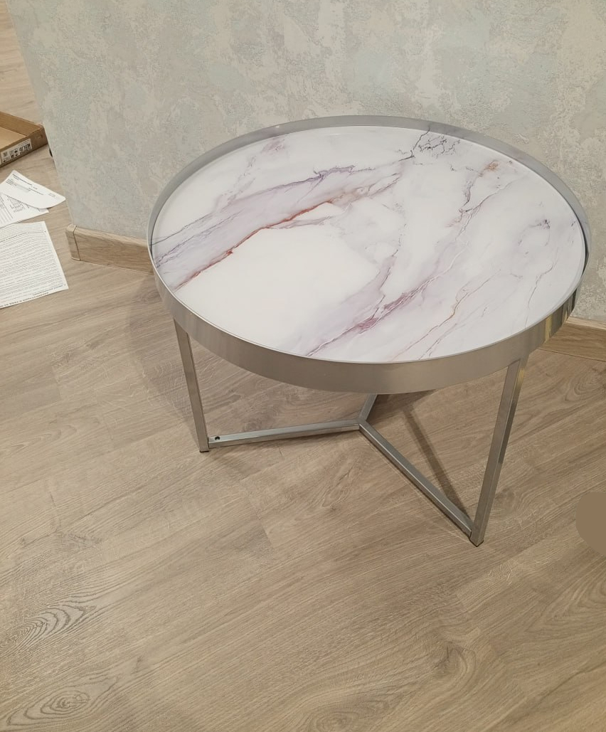 Журнальный столик «Орин» — лаконичная модель в современном стиле с элементами ар-деко и неоклассики, которая благодаря своему универсальному дизайну прекрасно впишется в любой домашний или офисный интерьер и украсит собой диванную зону. Круглая столешница выполнена в стекле с УФ-печатью, которое эффектно преломляет как искусственное, так и естественное освещение, а красота мраморного рисунка мгновенно приковывает взгляд и завораживает, создавая яркий акцент.
