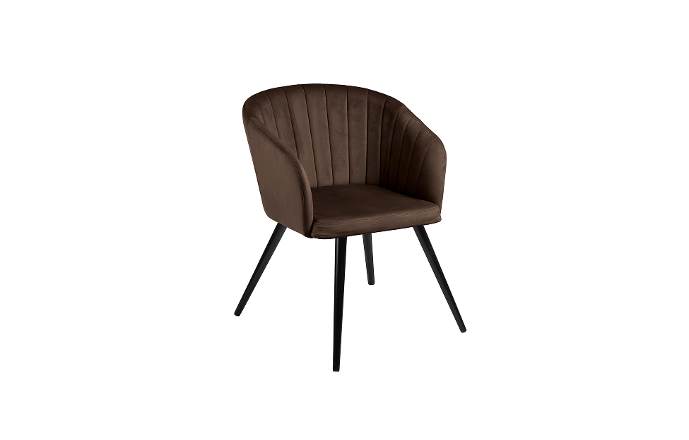 Стул-кресло Леон с поворотным механизмом прекрасно впишется в любой интерьер и комнату. Такой стул можно использовать как в качестве обеденного стула, так и в виде рабочего кресла к письменному столу. Обивка из велюра в актуальном коричневом оттенке прекрасно гармонирует с металлическими ножками черного цвета. Такие стулья украсят современные интерьеры, а также пространства в стиле эклектики.