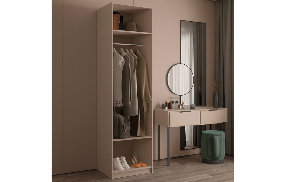 - Корпус оснащен двумя полками и штангой для одежды;