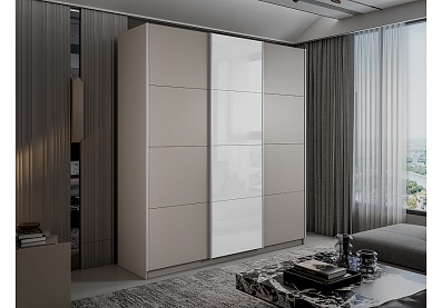 Шкаф-купе Lux 210х230х57 белый глянец/кашемир 210x230 Кашемир , С полками