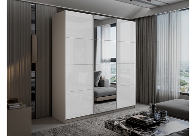 Шкаф-купе Lux с зеркальными дверцами 210x230 Белый, С полками